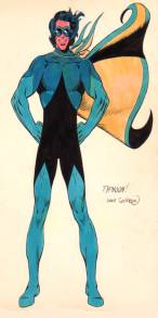 Back in the 1970's, Dave Cockrum brought the struggling Legion of Super-Heroes out of obscurity in the pages of SUPERBOY. During his short run, the team went from a back-up feature to co-stars. Many members were given great, new costumes. Dave also created four new Legionnaires to be included on the team. Only one of which, Starfire (later ERG-1/Wildfire), made it onto the team and into the comic. The other three - Nightcrawler, Quetzal, and Typhoon - ended up as members of a proposed offshoot team.